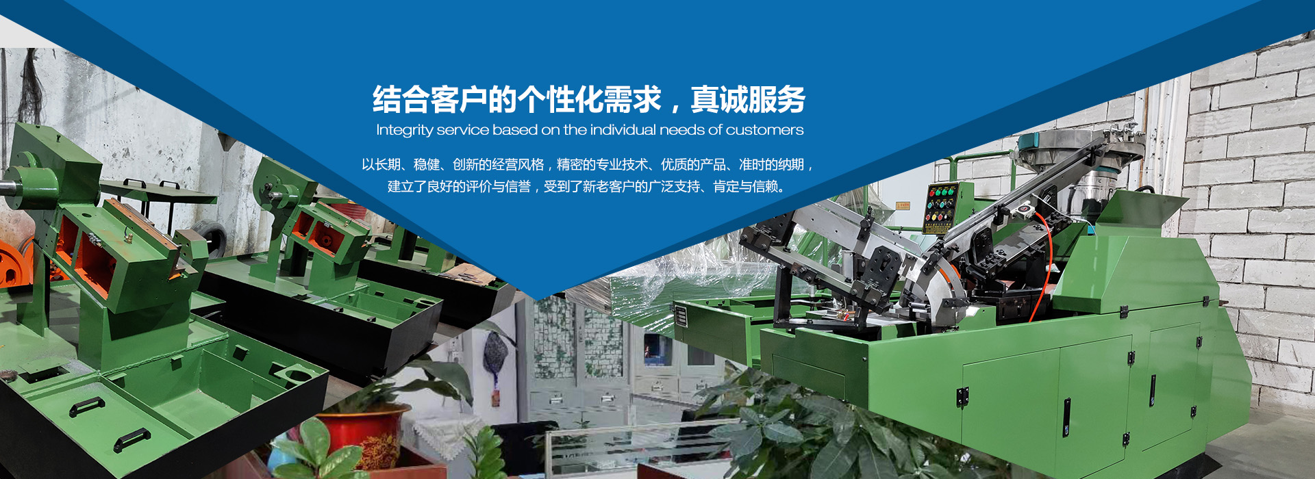 東莞市勝鑫五金機械有限公司成立于2013年,是一家集設計開發(fā)、生產制造,質量管控,物流平臺于一體緊固件生產設備整體解決方案綜合性企業。本廠擁有經驗豐富專業機械設計開發(fā)團隊及配置高精密度的加工、質量控制設備用于精密機械制造。本公司專業制造合模機、開合模機、打頭機、冷鐓機、搓牙機、一模二沖打頭機、四模四沖螺絲成型機等緊固件生產設備并提供各機型配件生產支持,以經驗豐富的專業設計及以先進生產技術,優(yōu)質服務,提供適合客戶需求的各類緊固件生產設備,設備廣泛使用于各類緊固件生產,并可根據客戶要求,為客戶設計制造各種非標螺絲機械,并提供調試,配件供應及專業維修服務。結合客戶的個性化需求,真誠服務。以長期、穩(wěn)健、創(chuàng)新的經營風格,精密的專業技術、優(yōu)質的產品、準時的納期,建立了良好的評價與信譽,受到了新老客戶的廣泛支持、肯定與信賴。 創(chuàng)造提升客戶競爭力的價值,立足于中國國內市場,打造勝鑫品牌,為全球客戶提供穩(wěn)定的安全的供應鏈服務。